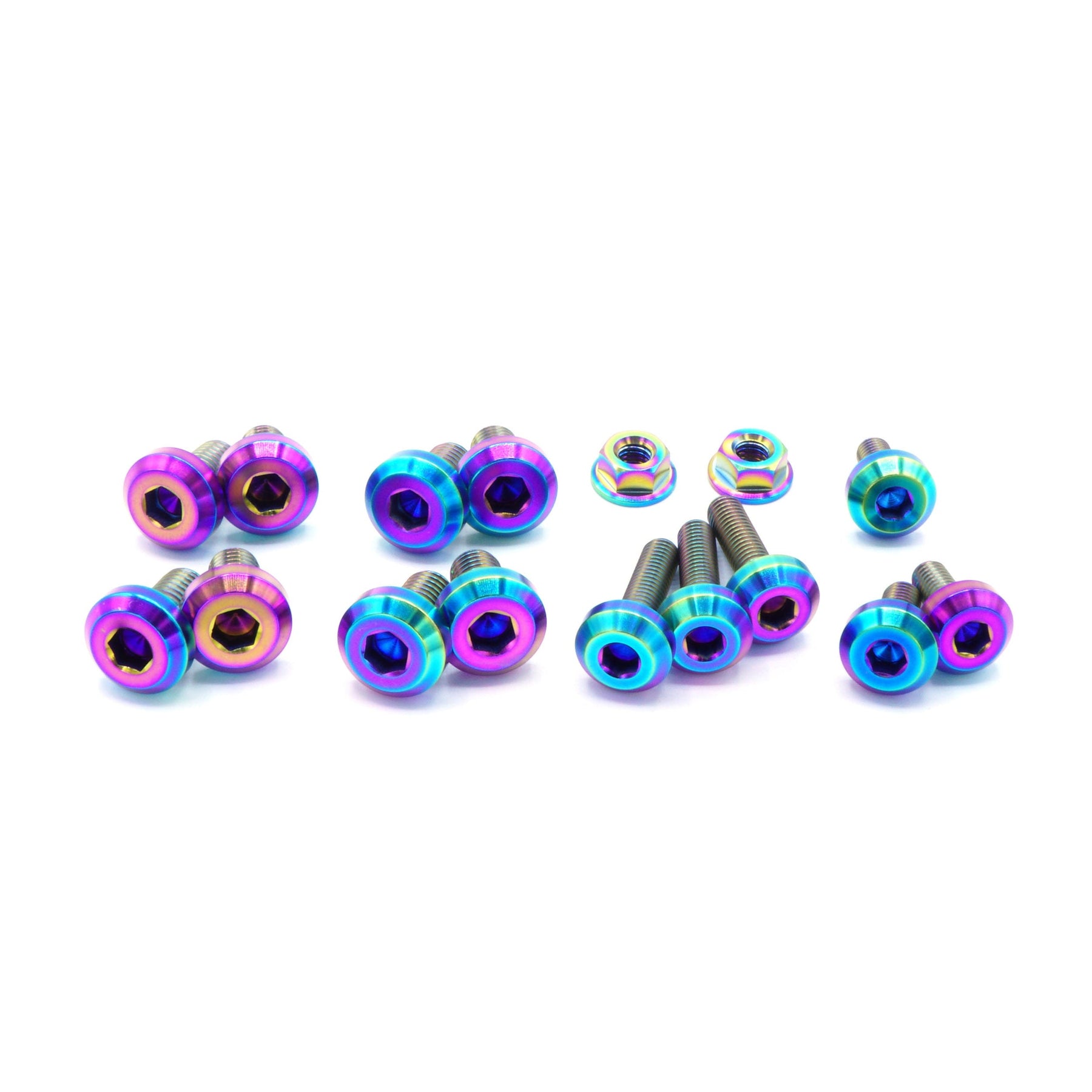 This 16 piece kit includes bolts, nuts, and washers manufactured from extremely durable, anticorrosive, and lightweight GR5 titanium metal.