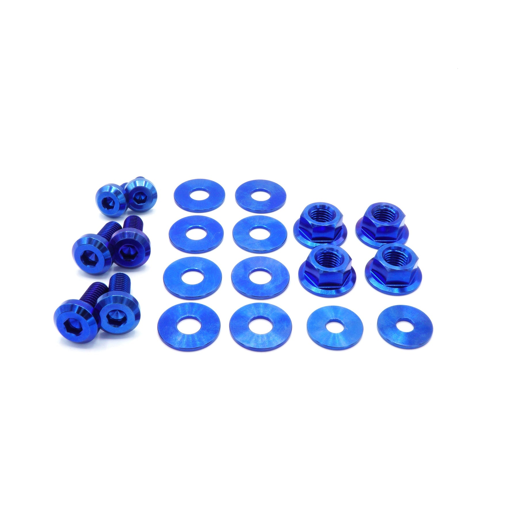 This 20 piece kit includes bolts, nuts, and washers manufactured from extremely durable, anticorrosive, and lightweight GR5 titanium metal.
